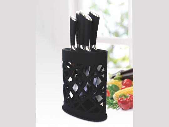 印花刀肉PP噴橡塑手柄五件套刀+水立方座 | KS449C
